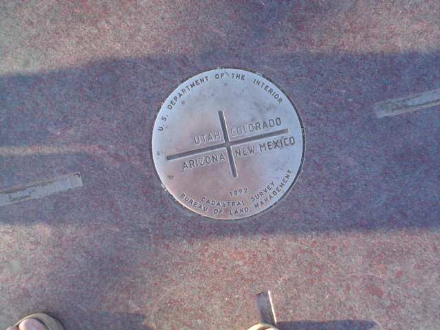 One little park inside Navajo lands is marked on the map, perhaps because so many people know about it. This is "Four Corners," where the states of Utah, Arizona, New Mexico, and Colorado meet at the same point -- the only such point in the United States. We went to that, too: